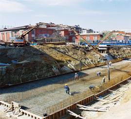 a/ Cut and cover method in reinforced trenches and in trenches with slopes respectively, depending on the presence of buildings nearby the route, or not. The construction of the metro stations or the tunnels is being implemented in these trenches. After that they are being backfilled and the surface above is being restored. In the so built constructions installing of the equipment and architectural outlining is being done. Massive reinforcements with great extent of hardness are being mainly applied, thus ensuring the construction works in close proximity to the existing buildings and facilities without compromising their integrity. In some cases these reinforcements are parts of the supporting structure of the stations and the tunnels. The first stations from the section Sv. Nedelya sq. – Lyulin RD and three of the stations from the section Sv. Nedelya sq. – Mladost RD, were built in a similar way. It is intended to be used the same method for some of the stations from the second metro diameter – Central Railway Station, Lavov most, NDK and Sv. Naum.