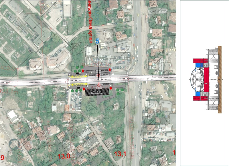 Fig. 5. Figure 5а shows the location of Lot 1 from Stage II in the urban planning, when Figure 5b. shows view of the reconstructed Lomsko Shose boulevard above the track of Lot 1.