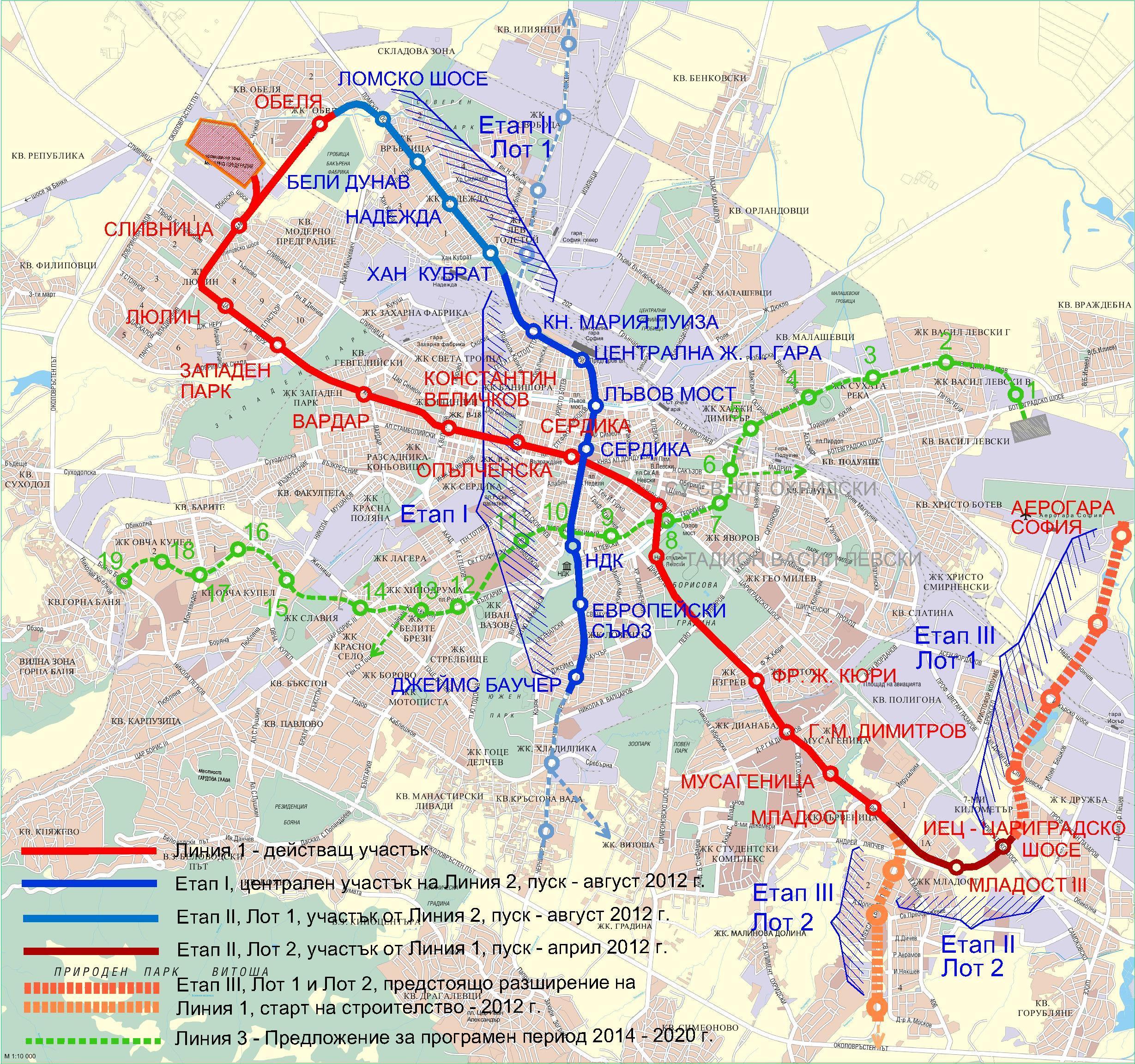 The first stage of the Sofia Metro Extension Project, included in OP "Transport" includes the route: "Nadezhda Overpass - Central Railway Station - Sv. Nedelya Sq. - NDK - Cherni Vrah blvd." 6.4 km long with 7 stations.